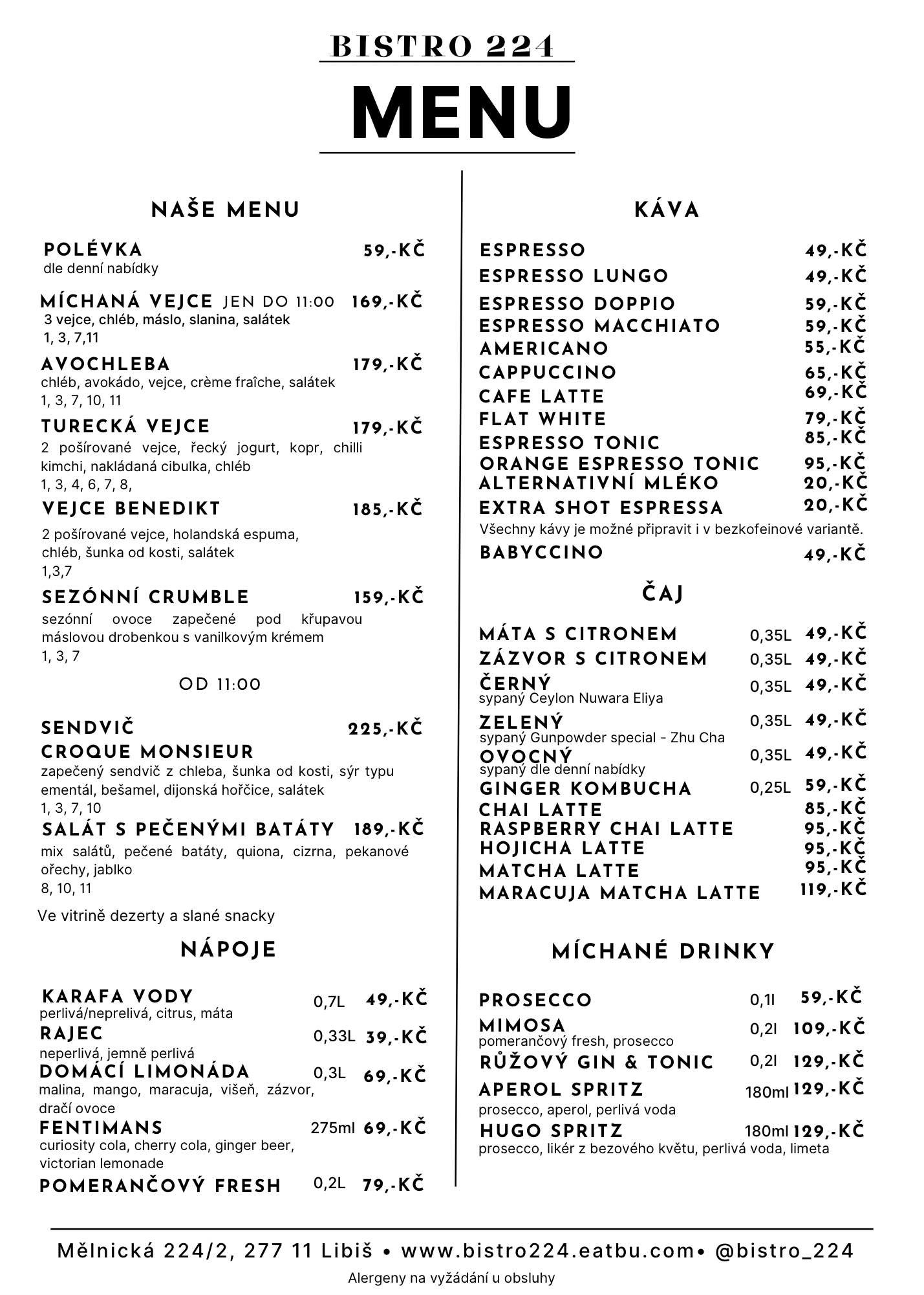 Ráno voní čerstvě připravenou kávou, matchou a domácími limonádami. Každý den pro vás připravujeme poctivé snídaně, sendviče, sladké dezerty i oblíbené brunchové talíře. Věříme, že jídlo má být zážitkem – proto pracujeme s kvalitními surovinami a servírujeme je s péčí.